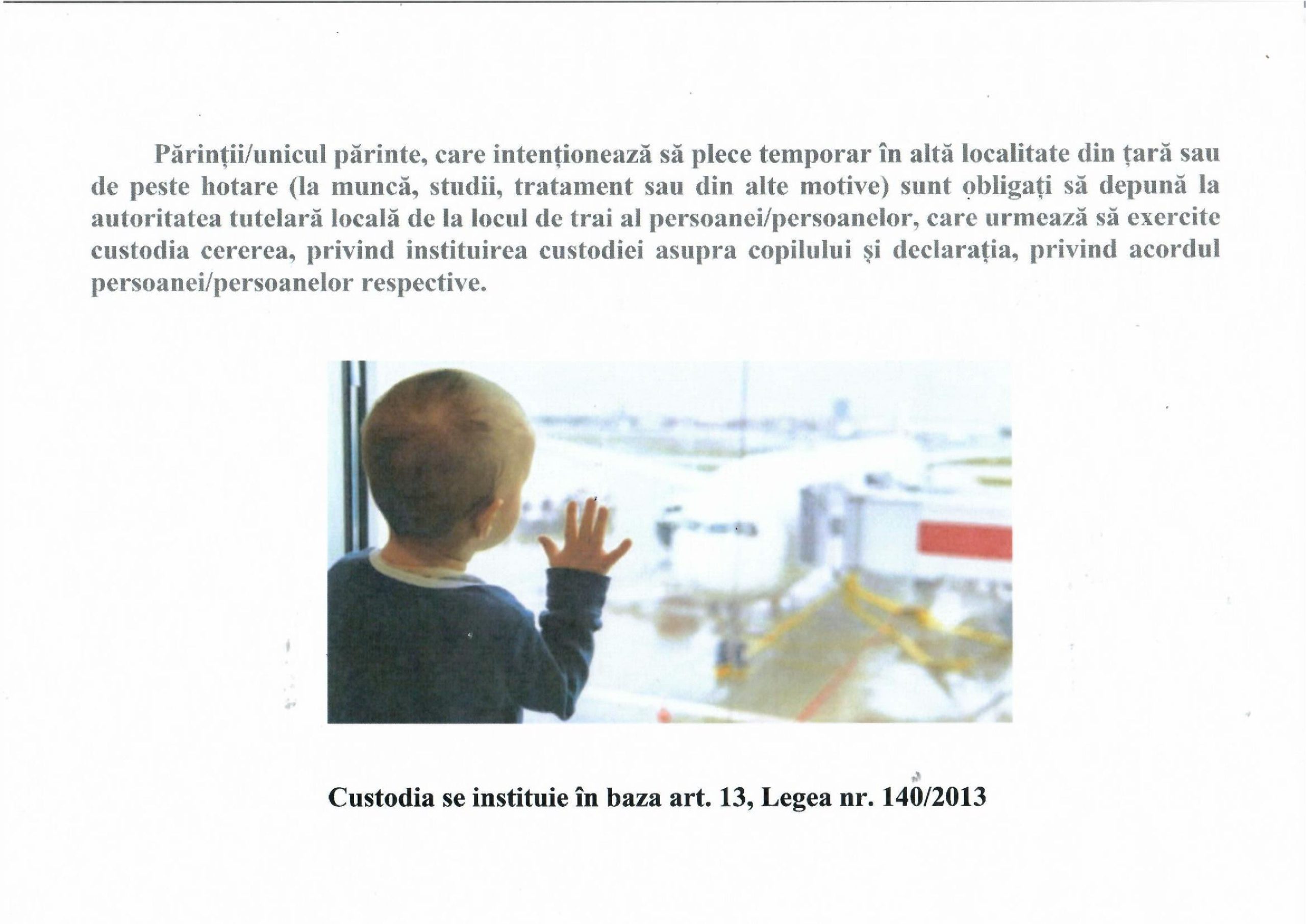 Anunț – Depunere cerere de instituire a CUSTODIEI