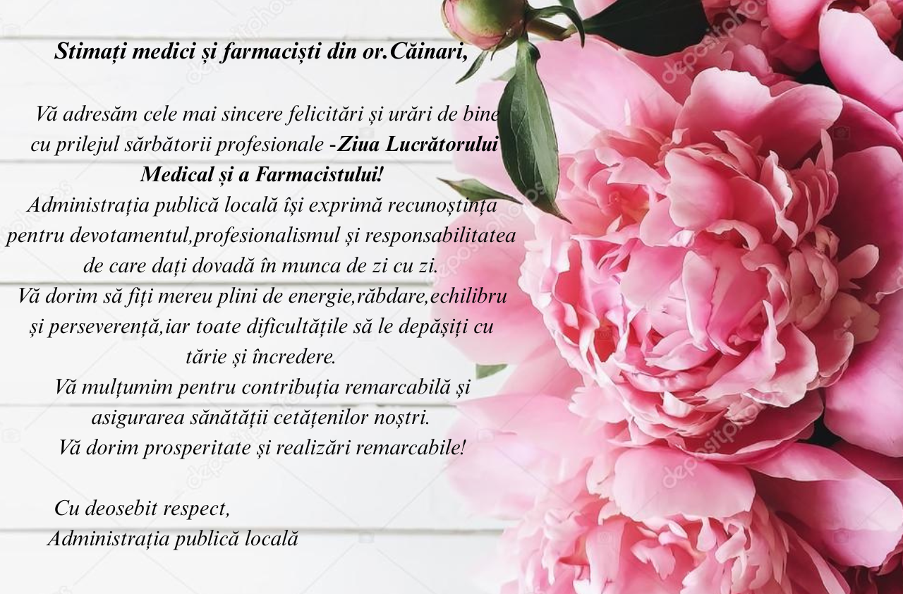 Mesaj de felicitare cu ocazia Zilei Lucrătorului Medical și a Farmacistului!