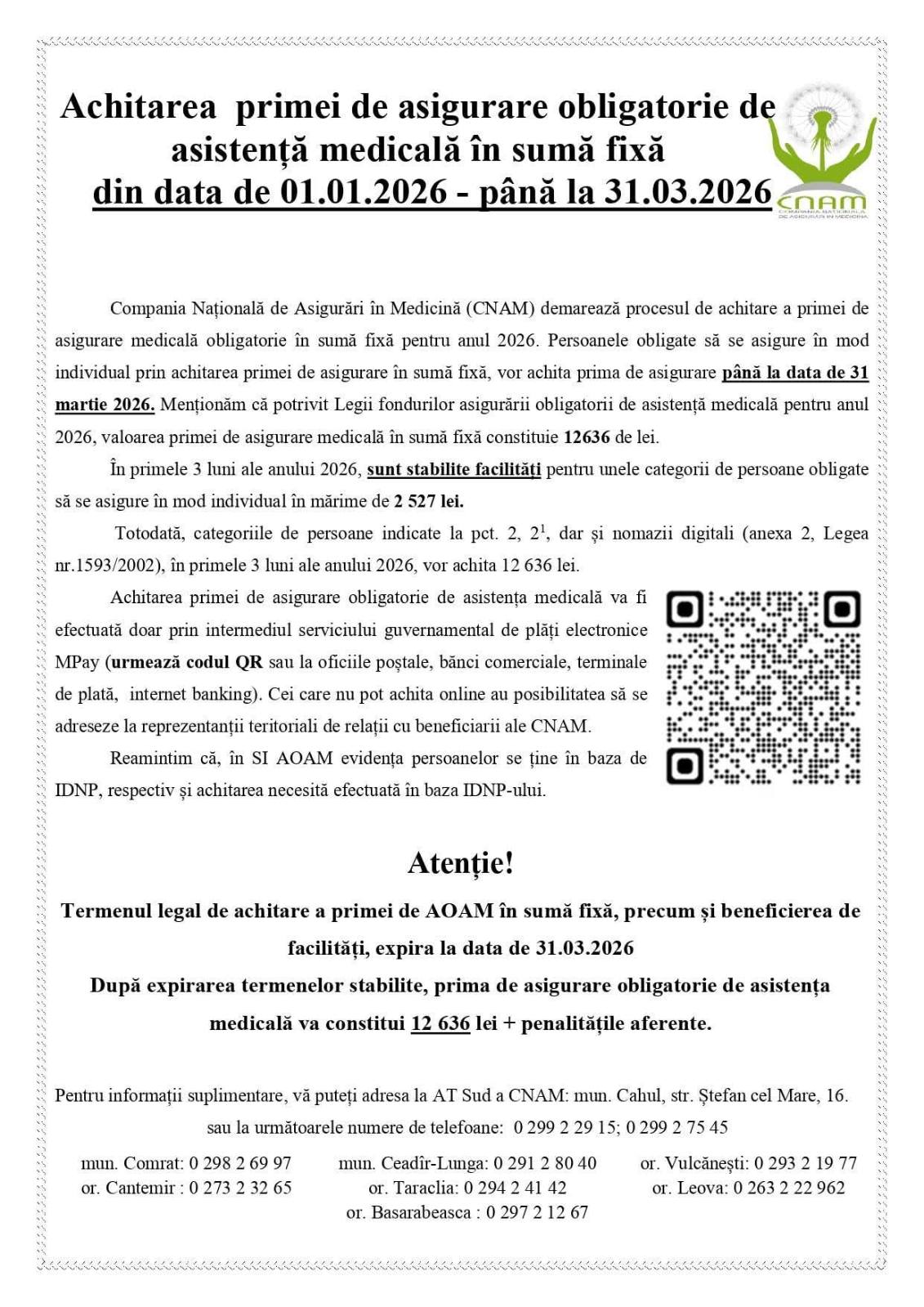 Achitarea primei de asigurare obligatorie de asistență medicală în sumă fixă