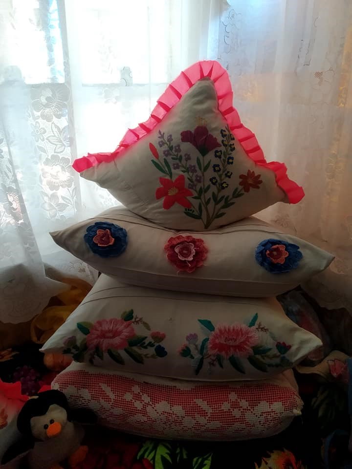 Mătușa Maria o femeie cu fața luminoasa și binevoitoare, dornică să păstreze încă vie frumusețea tradițiilor a meșteșugurilor tradiționale.Locuința cu reparație modernă,iar casa mare ,un loc sacru unde mătușa Maria păstrează broderii nenumărate:prosoape, fețe de pernă,așternuturi de pat; covoare,peretare,poloage cu buchete de flori,hulubi,cocostârci;